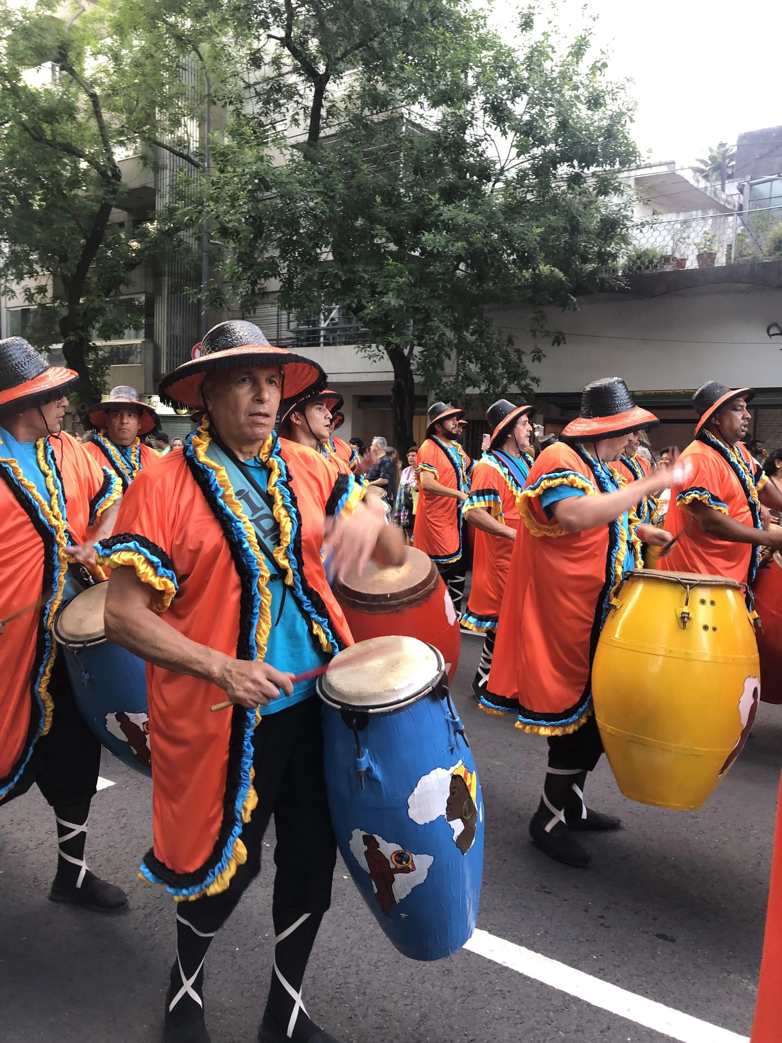 Of course, the parade started about 1.5 hours late, which gave our group time to eat and wander around Parque Lezama. I bought an ice cream, and the store owner said the parade would go until 11 PM! We didn’t last that long, but the drumming had people dancing along with the bands. Each band had to stay at least a block apart because of the sound levels.